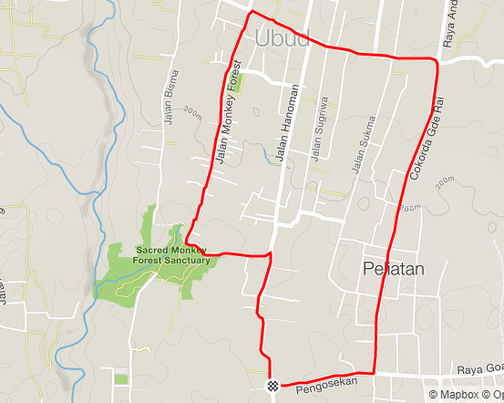 It’s a good morning for running around. The air was warm and crisps, the traffic was slow, and the sun was mild. We started our running journey from NamaStay at Premasanti 14, headed north and turned to the Monkey Forest. It was initially a relatively downhill until after passing through Monkey Forest.