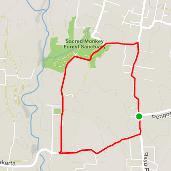 I ended the monkey forest trip at the front entrance of the sanctuary. I ran back directly through the monkey forest road and turn right to the south at the Raya Pengosekan Street to NamaStay.