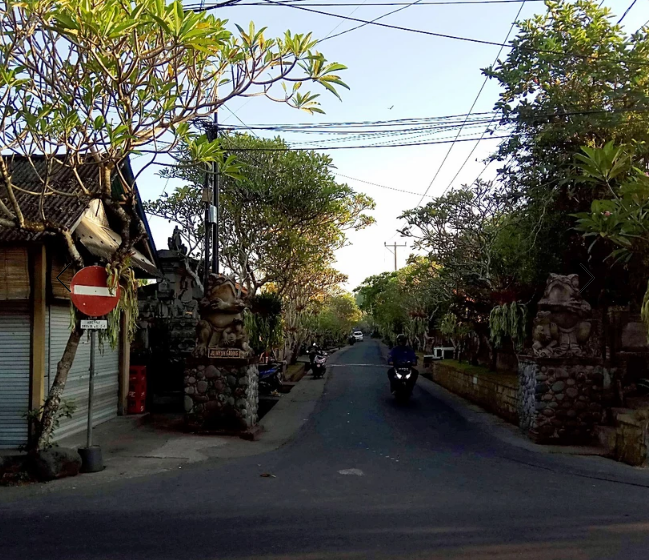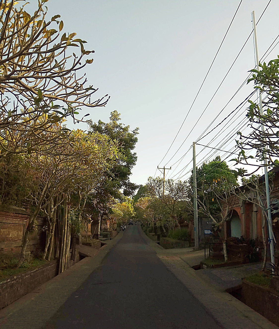 Upon entering the Gapura (gate) Nyuh Kuning, all you can see is silence, peace, and a very happy refreshing morning. I stopped so many times to take pictures. I ran up to a community football field and saw school children do gotong-royong (working hand-in-hand) to clean the surroundings of their school. There will be another article about gotong royong also in the future. The Nyuh Gading road, continued by Nyuh Bojog, seemed like a dead end. It is actually not, instead, there is a small alley. A very small one only about 1.5 m (5ft) wide enough for two persons, or two motorcycle. The end of the road, and the little alley is actually encircling the southern side of Monkey Forest.