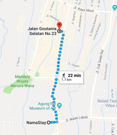Take a walk about 1.7 km or 1 mile from NamaStay towards Hanoman, then the Gootama will be on your left side after you passed the warung falafel on your left. At the end of the Southern Gootama St, you will see a Statue of Buddha (born of Siddhartha Gautama, hence the street name). Walk north and you will see a coffee roastery on your right. They’re open only 10AM – 5PM, but for the curiosity, you should make a little time to stop by. On your left you will see a small tattoo shop called Magic Ink Tatto. One of our earlier guest from New York has been there and had one of the best Buddha tattoo on his right delt.